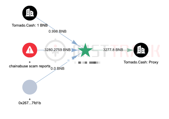 黑客手续费来源是 TornadoCash,这里也可以向上进行溯源分析,在此处不做进一步展开。