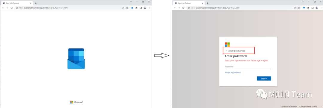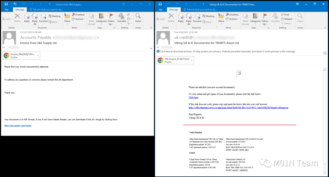 近期,安全研究员捕获了多封逃避网关拦截的钓鱼邮件,攻击者利用合法的邮件服务器发送恶意邮件,引导受害者打开html附件,最终捕获受害者输入的凭据信息。本文将就事件中的钓鱼html附件进行分析与探究。