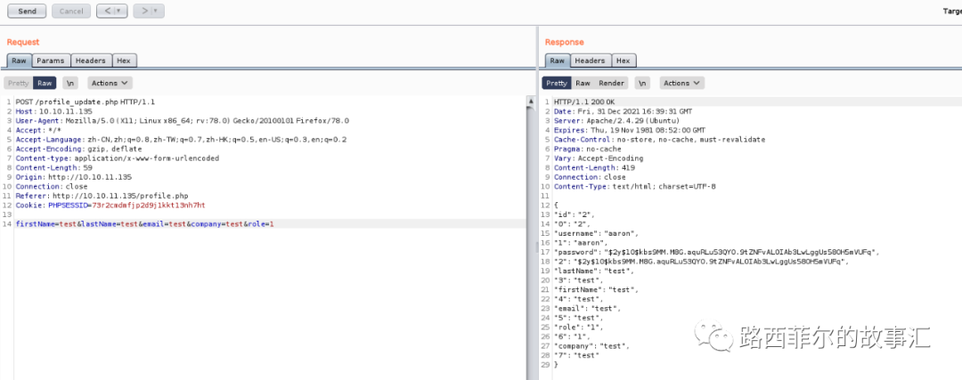 这里可以看到,咱们要使用文件上传功能那就得有一个role1的权限,但是目前没有任何线索能得到关于role1的内容,这里把/etc/passwd内获取到的账户aaron拿去尝试一下