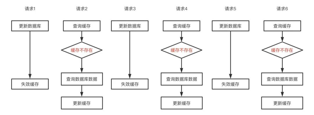 删除缓存值意味着对应的 key 会失效,那么这时候读请求都会打到数据库。如果这个数据的写操作非常频繁,就会导致缓存的作用变得非常小。而如果这时候某些 Key 还是非常大的热 key,就可能因为扛不住数据量而导致系统不可用。