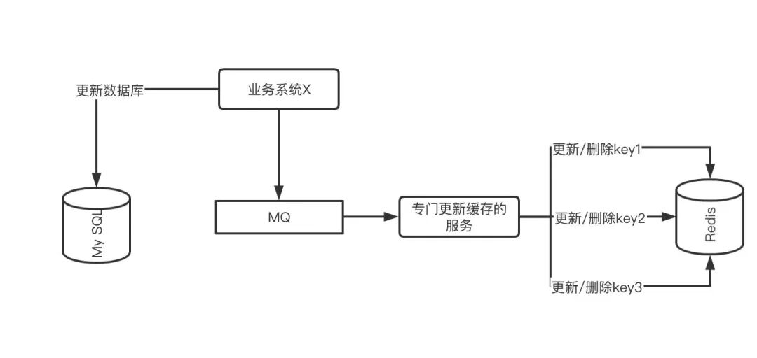 针对这个场景,解决方案和上文提到的保证最终一致性的操作一样,就是把更新缓存的操作以 MQ 消息的方式发送出去,由不同的系统或者专门的一个系统进行订阅,而做聚合的操作。如下图: