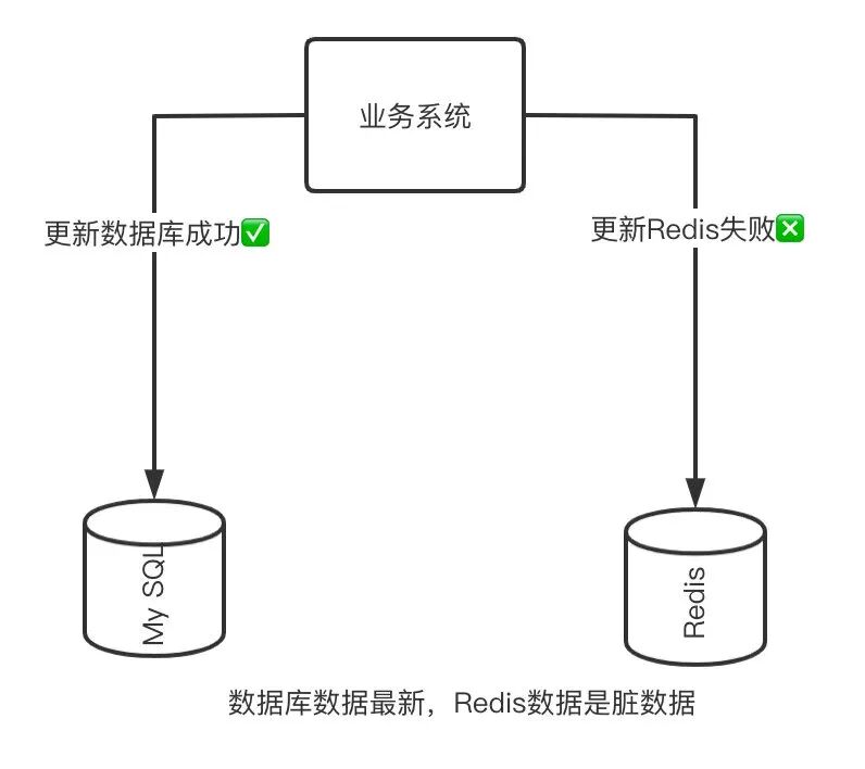 当然,如果更新 Redis 本身是失败的话,两边的值固然也是不一致的,这个前文也阐述过,几乎无法根除。