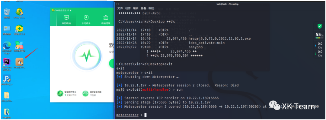 最后把马子发给目标,运行后等待上线,下面是过电脑管家跟360的截图。