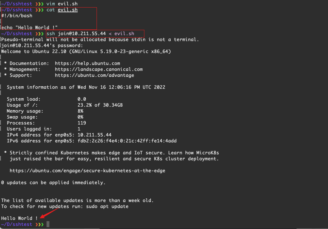 ssh 提供了一种登录不进入shell,直接执行命令的场景