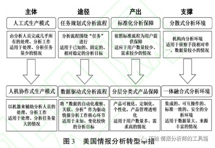 。分析转型是一项复杂的系统工程,为适应智能化时代安全形势、业务环境、技术应用等的变化,美情报部门重点在分析生产、分析流程、分析保障、分析环境