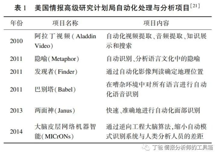 进入 21 世纪以来,机器学习、自然语言处理、交互式可视化等智能技术不断取得重大突破,为美情报部门解决大数据难题提供了解决方案。美方认为,大数