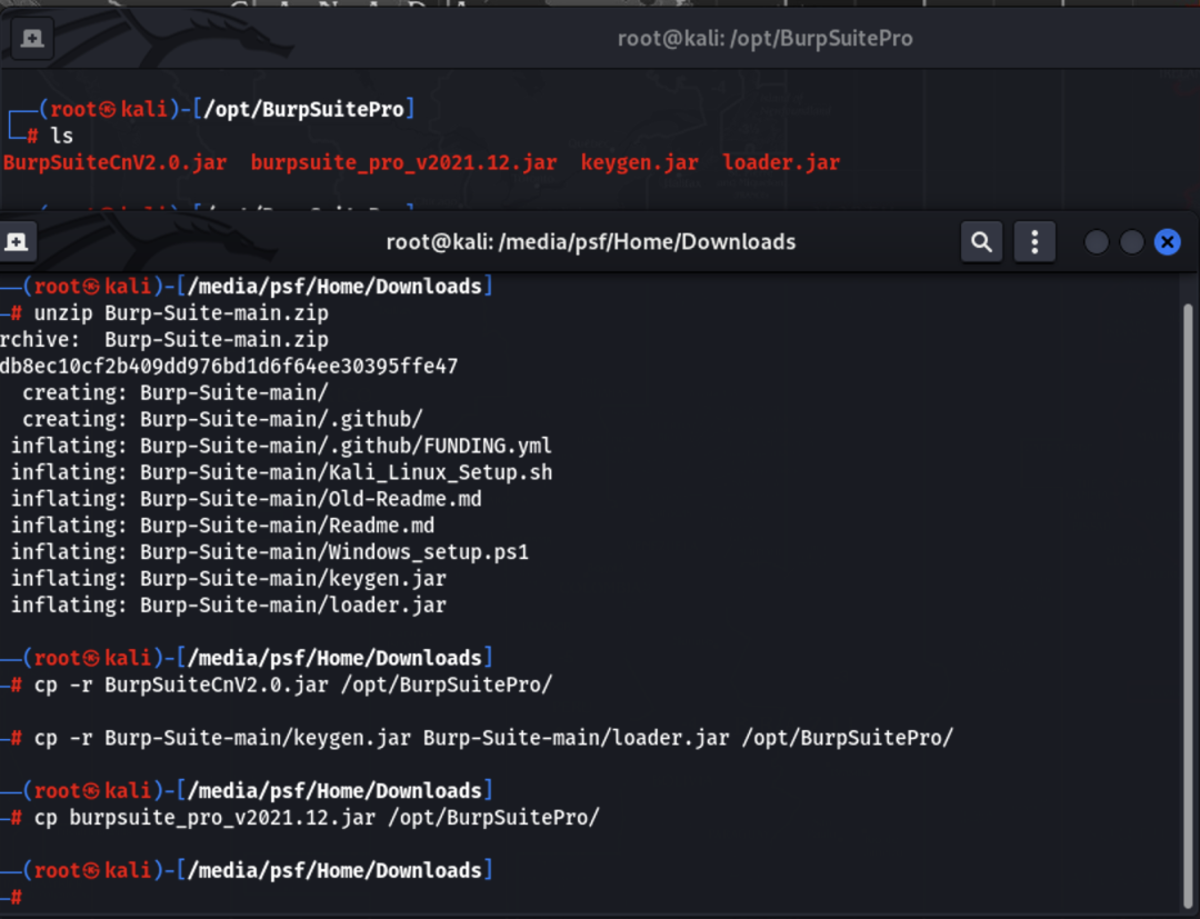 cp -r Burp-Suite-main/keygen.jar Burp-Suite-main/loader.jar /opt/BurpSuitePro