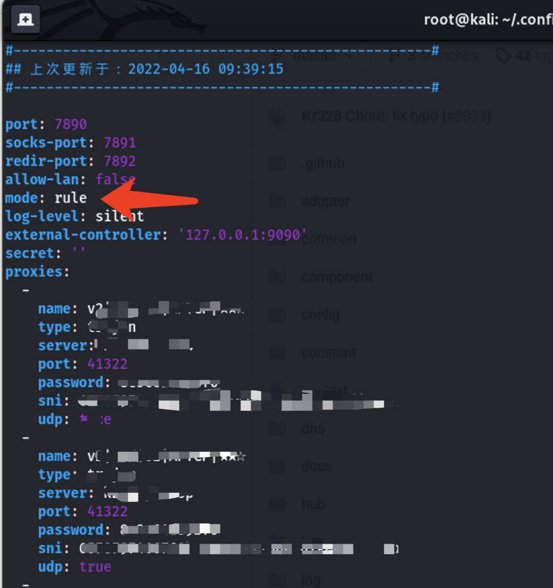 有小伙伴读到这里会发现,clash的web页面的设置是个摆设,无法进行设置全局,修改端口等等操作。这里就需要进配置文件中设置了。vim config.yaml