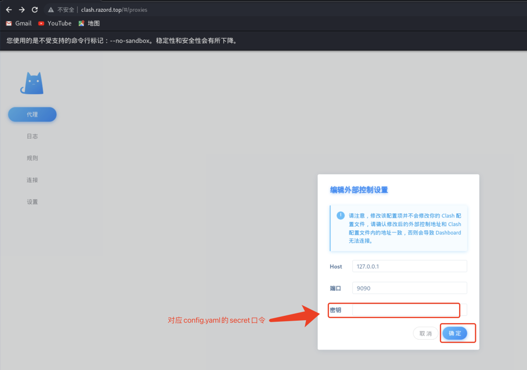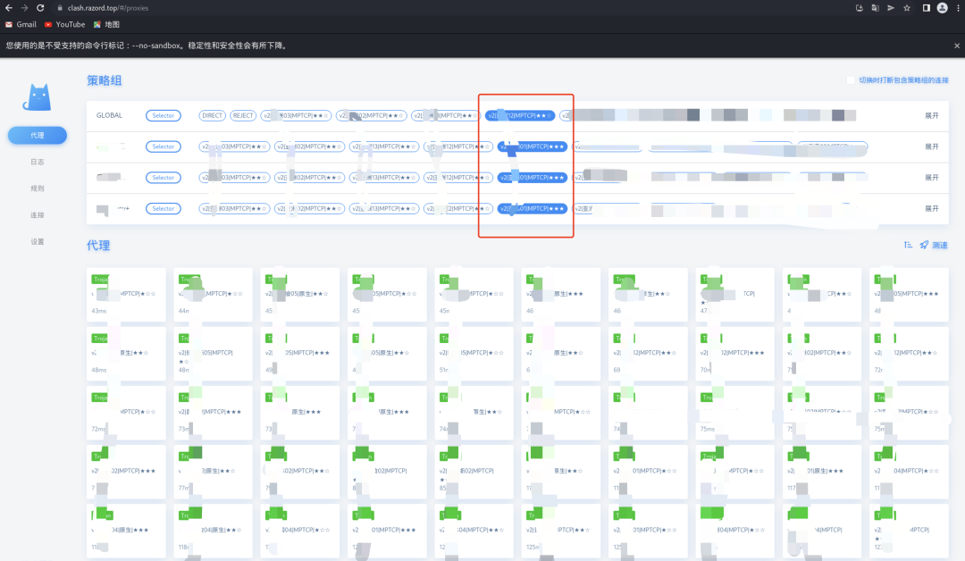 运行成功后访问下方连接即可选择节点:http://clash.razord.top/#/proxies