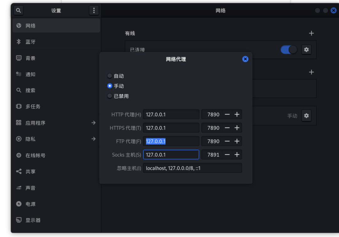 这里也可以使用命令直接编辑系统代理(不推荐)