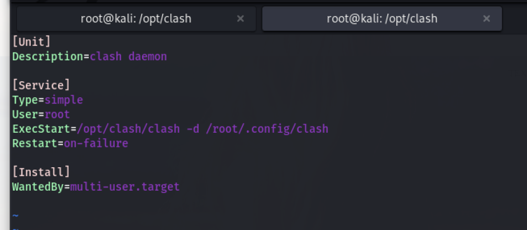 ExecStart=/opt/clash/clash -d /root/.config/clash