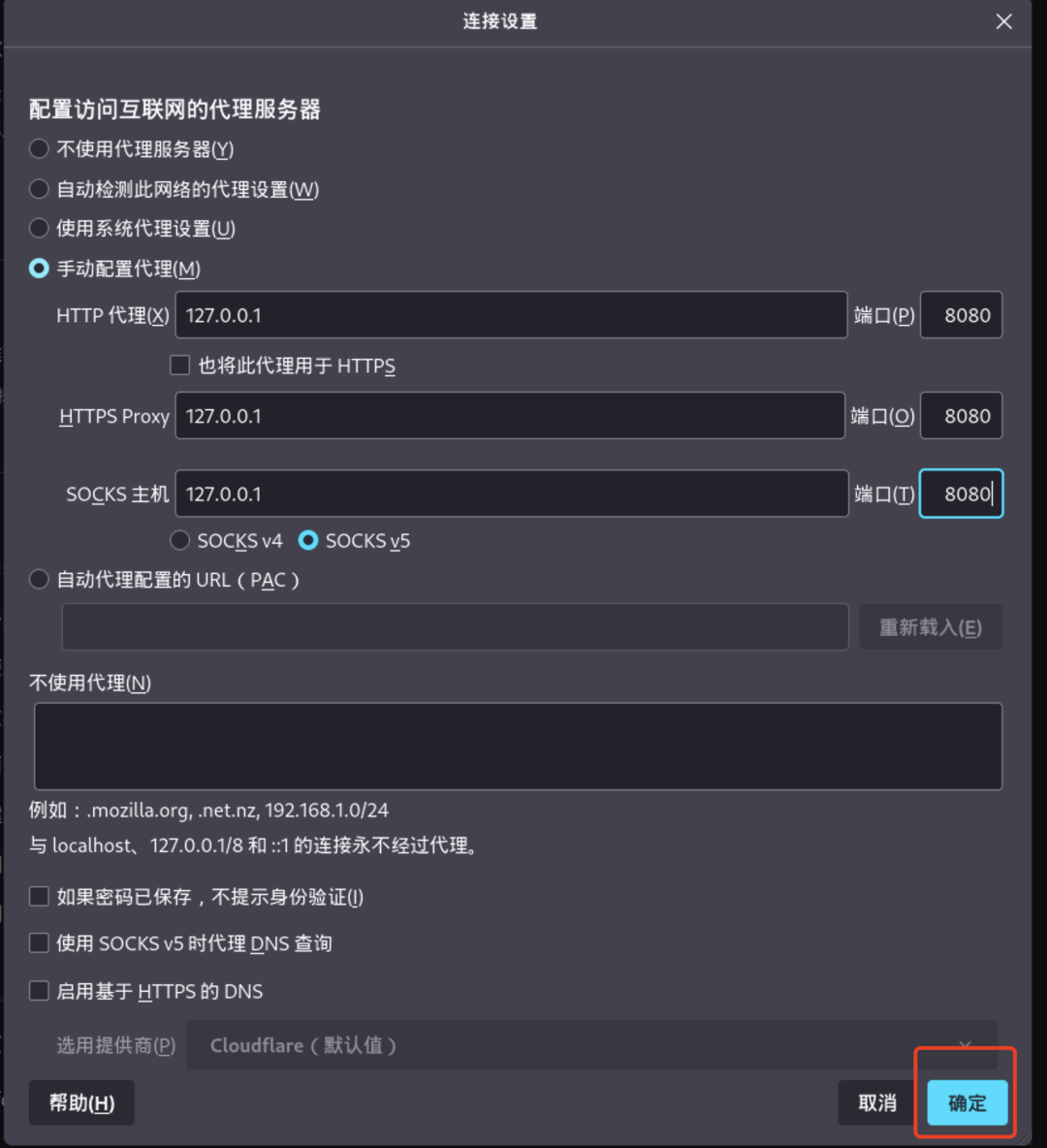 浏览器-->BurpSuite-->clash的socks5-->谷歌浏览器代理配置Firefox的快捷入口: about:preferences设置BurpSuite的默认监听8080端口代理,这样BurpSuite才能抓到