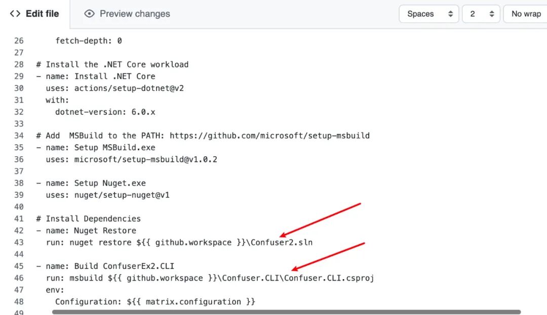 # Install Dependencies - name: Nuget Restore run: nuget restore ${{ github.workspace }}\Confuser2.sln