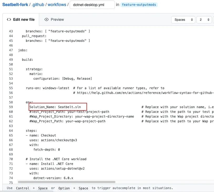 jobs: build: strategy: matrix: configuration: [Debug] runs-on: windows-latest env: Solution_Name: Seatbelt.sln # 替换为解决方案名