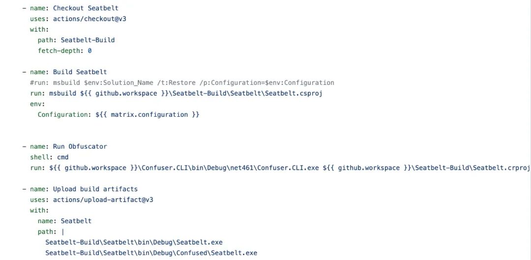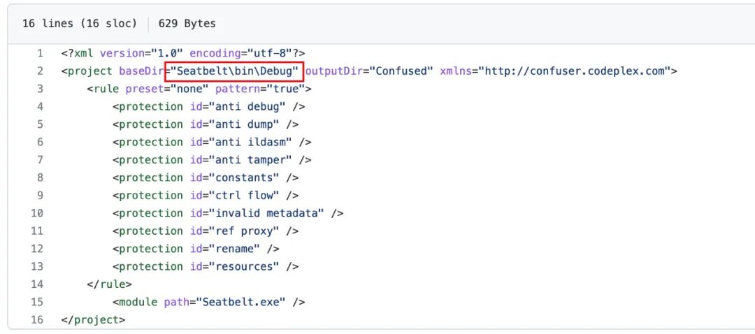 ⚠️注意:因为ConfuserEx2是基于配置文件进行操作的,因此先要编辑好一个配置文件并上传至Seatbelt-fork仓库。注意配置文件中BaseDir选项的路径,是相对crproj文件本身而言的。