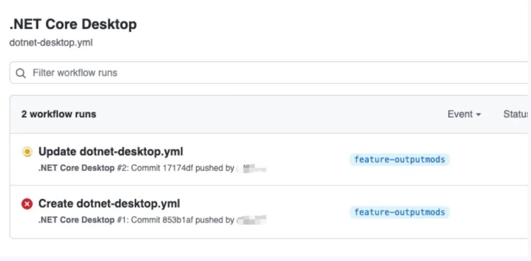 我们先使用提供的模板,对其进行修改。其中,需要修改我们要编译的解决方案名。其他的步骤包括,拉取代码、安装.Net运行时环境、配置MSBuild构建工具、编译、上传等。还包括一些单元测试、程序签名等步骤,我们暂时不需要,直接注释掉即可。提交之后,就将触发一次构建。因为workflow使用的是push触发器,所以每次push操作都会自动触发一次构建。