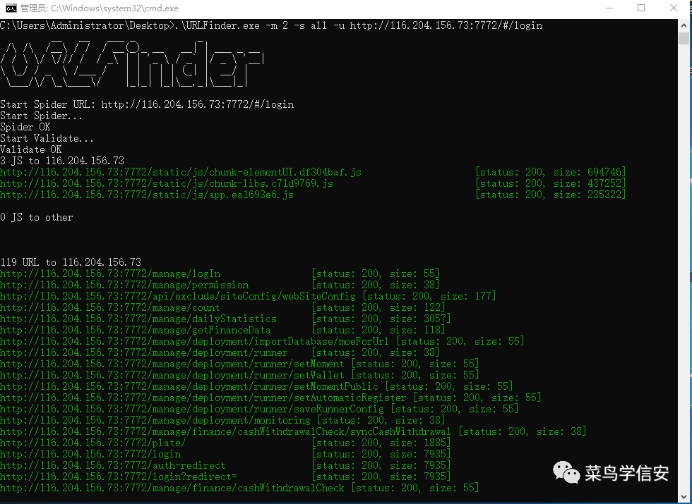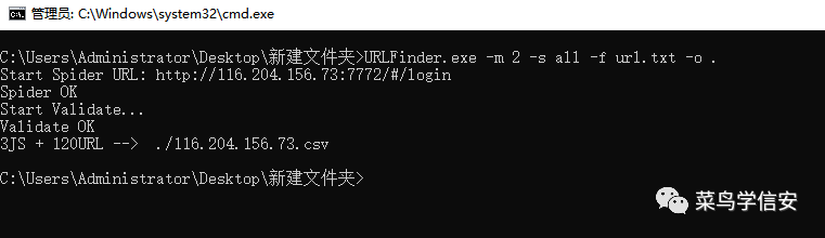 URLFinder.exe -s all -m 2 -f url.txt -o d:/