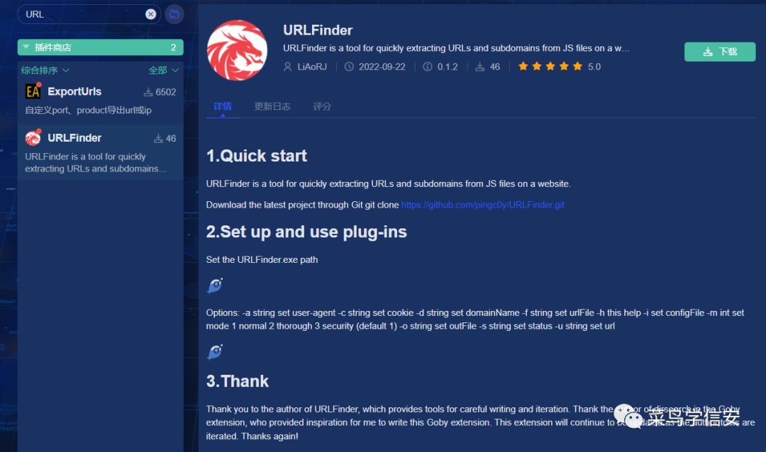 URLFinder是一款用于快速提取检测页面中JS与URL的工具