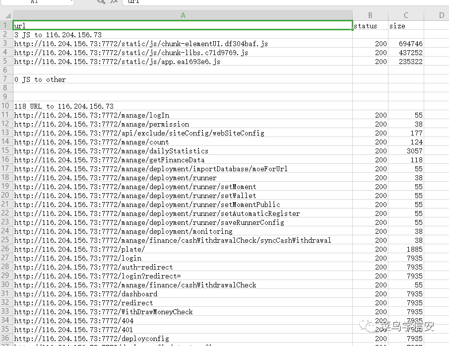 URLFinder更专注于提取页面中的JS与URL链接,提取的数据更完善且可查看状态码、内容大小、标题等
