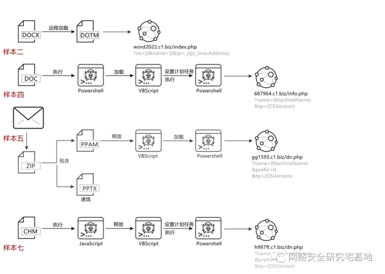 近日,安恒信息的研究人员发布了具有朝鲜背景的APT组织Konni,在2022年针对东欧和东北亚地区的攻击活动分析报告。报告中,安恒信息的研究人员捕获到一批来自Konni APT组织的恶意样本。按照针对地域,研究人员将样本区分为针对韩国地区和针对俄罗斯地区两类。针对韩国地区的样本中,发现该组织重新开始针对加密货币行业,而在针对俄罗斯地区的样本中,发现恶意样本主要针对外交实体及相关人员。此外,安恒信息还在10月中旬捕获了该组织利用政治新闻话题传播恶意CHM文件的样本,并怀疑该组织开始将目标转向东南亚地区国家。报告中还总结了该组织在后续下发的组件存在的更新:RAT重新启用x86版本,疑似扩大攻击范围,提高与目标机器适配性;启用除INI后缀之外的配置文件,逃避行为检测;采用新的加密算法对C2配置文件、Windows API函数等进行加解密;不再以明文传输窃取数据,而是通过AES加密避免流量检测;通过修改合法软件,设置异常函数,以加载恶意代码;灵活应用VBscript、Powershell等脚本组成攻击链。样本攻击链图如下所示。
