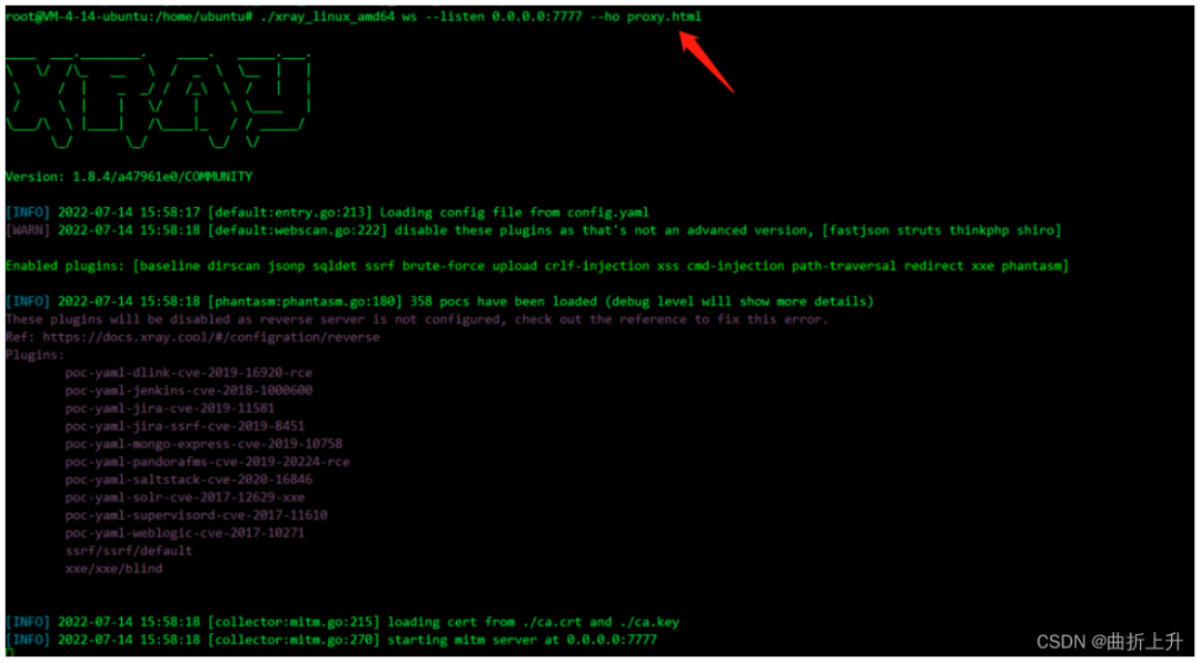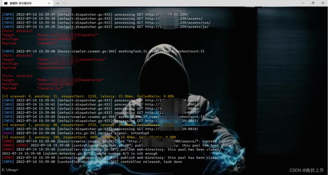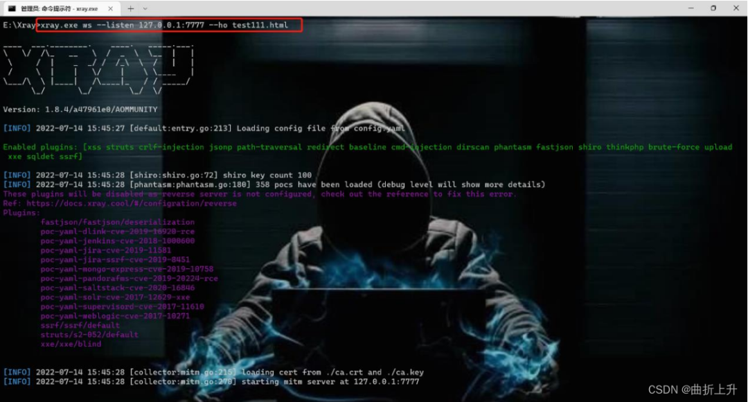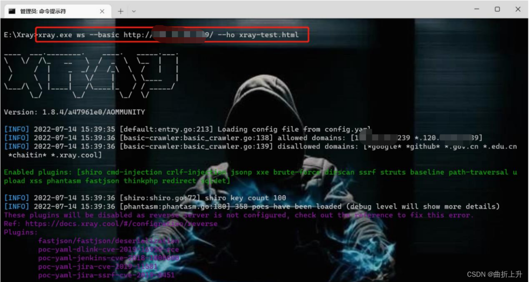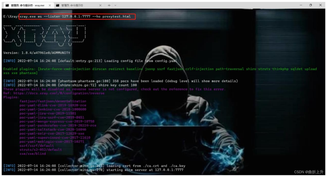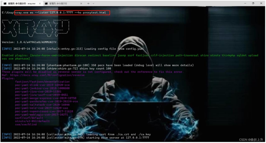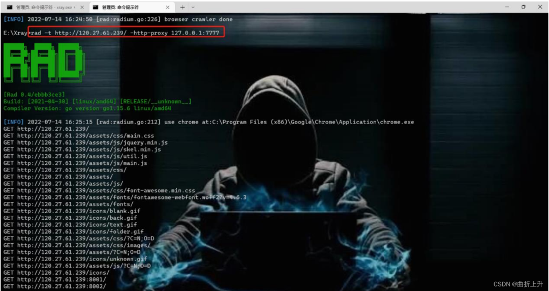 xray.exe ws --listen 127.0.0.1:7777 --ho proxy.htmlrad -t http://IP地址 -http-proxy 127.0.0.1:77774.高级版Xray融合了Rad爬虫