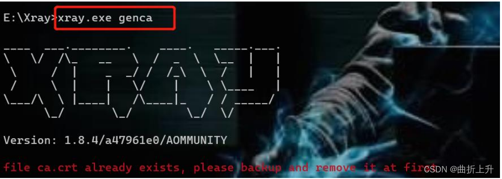 xray.exe ws --basic http://xxx.com/ --ho xray-xxx.html1.生成ca证书。(这里我已经生成好了)
