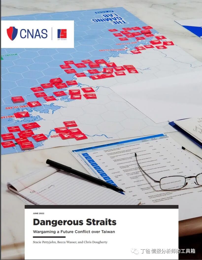 2022年6月15日,从事国家安全和国防政策研究的美国智库新美国安全中心(CNAS)出炉了一份《危险海峡:兵棋推演未来台湾冲突》报告。新美国安全中心的兵棋推演实验室和美国全国广播公司(NBC)的“与媒体见面”共同开展了这次设想2027年台海爆发冲突的兵棋推演。
