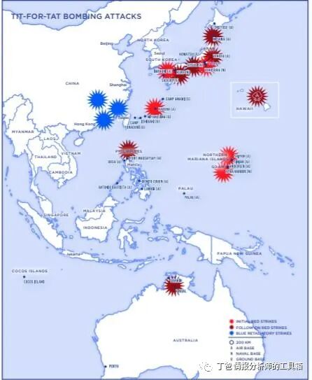 该兵棋推演预测红方难以在一周内完成决定性胜利,而蓝方的周边基地参与冲突牵制了红方的力量,但同时也使得冲突不断螺旋式升级,直至失去控制走向双方或使用核武的未知领域。