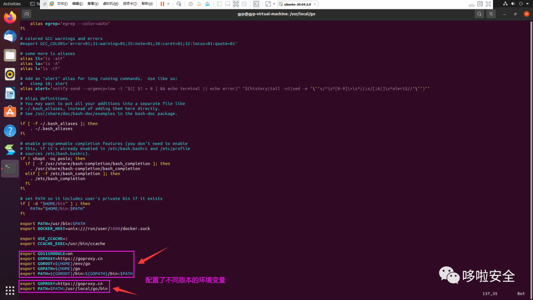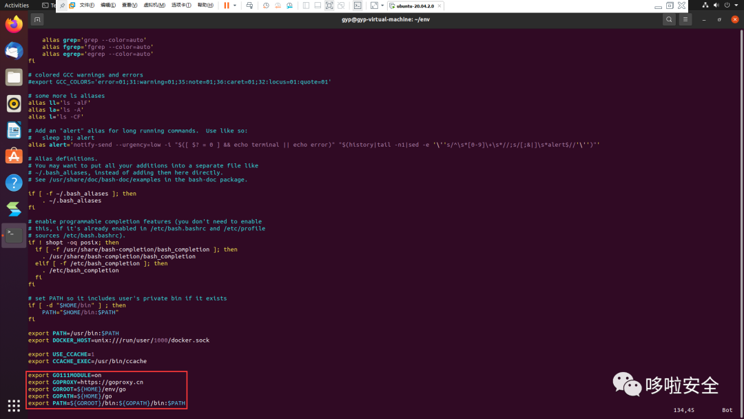 mkdir ~/env && cd ~/envwget https://dl.google.com/go/go1.17.13.linux-amd64.tar.gztar xvf go1.17.13.linux-amd64.tar.gz或wget https://golang.google.cn/dl/go1.18.linux-arm64.tar.gztar xvf go1.18.linux-arm64.tar.gzvim ~/.bashrcsource ~/.bashrc