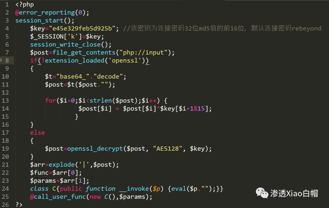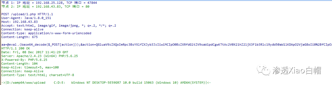 weevely生成的后门利用了base64加密方法和字符串变形技巧,以此作为特征可进行检测。