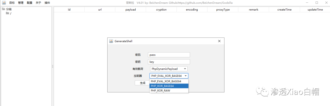 1、JavaDynamicPayloadJAVA_AES_BASE64:jsp、jspxJAVA_AES_RAW:jsp、jspx2、CShapDynamicPayloadCSHAP_AES_BASE64:aspx、asmx、ashxJAVA_AES_RAW:aspx、asmx、ashx3、PhpDynamicPayloadPHP_XOR_BASE64:phpPHP_XOR_RAW:phpXOR是将数据进行异或处理Raw是将加密后的数据直接发送或者输出Base64是将加密后的数据再进行Base64编码