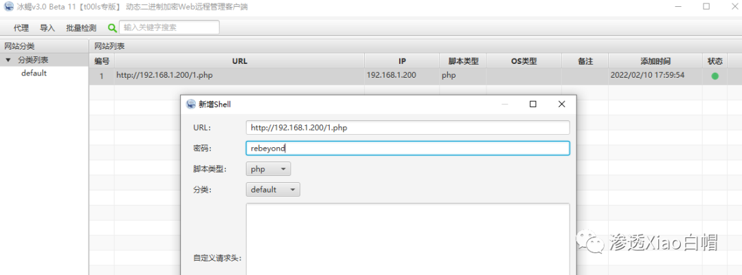 “冰蝎”是一款动态二进制加密网站管理工具。其支持php、jasp、asp、aspx,支持自定义请求头。