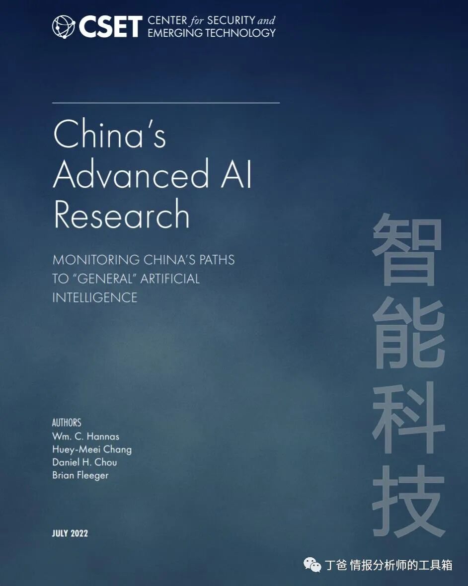 专注于人工智能、高级计算和生物技术进步影响的美国乔治敦大学沃尔什外交学院的政策研究机构“安全与新兴技术中心”(CSET)于2022年7月发布了一篇有关中国人工智能发展的研究报告:《中国高级人工智能研究-监控中国“通用”人工智能的道路》。