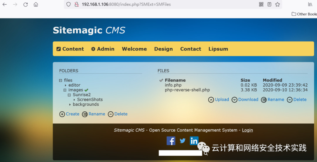 有web服务,浏览器访问http://192.168.1.106:8080,是CMS,