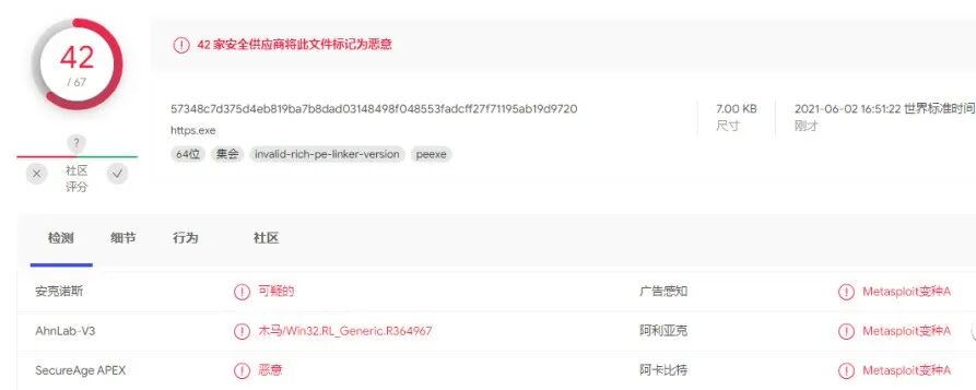 0x01 前言做为一名网络安全爱好者在日常工作中难免会用到一些恶意软件检测平台,用来分析一些木马样本,例如:钓鱼邮件的恶意样本分析,分析网上下载的工具是否存在木马后门,自己编写了免杀工具查看其免杀效果