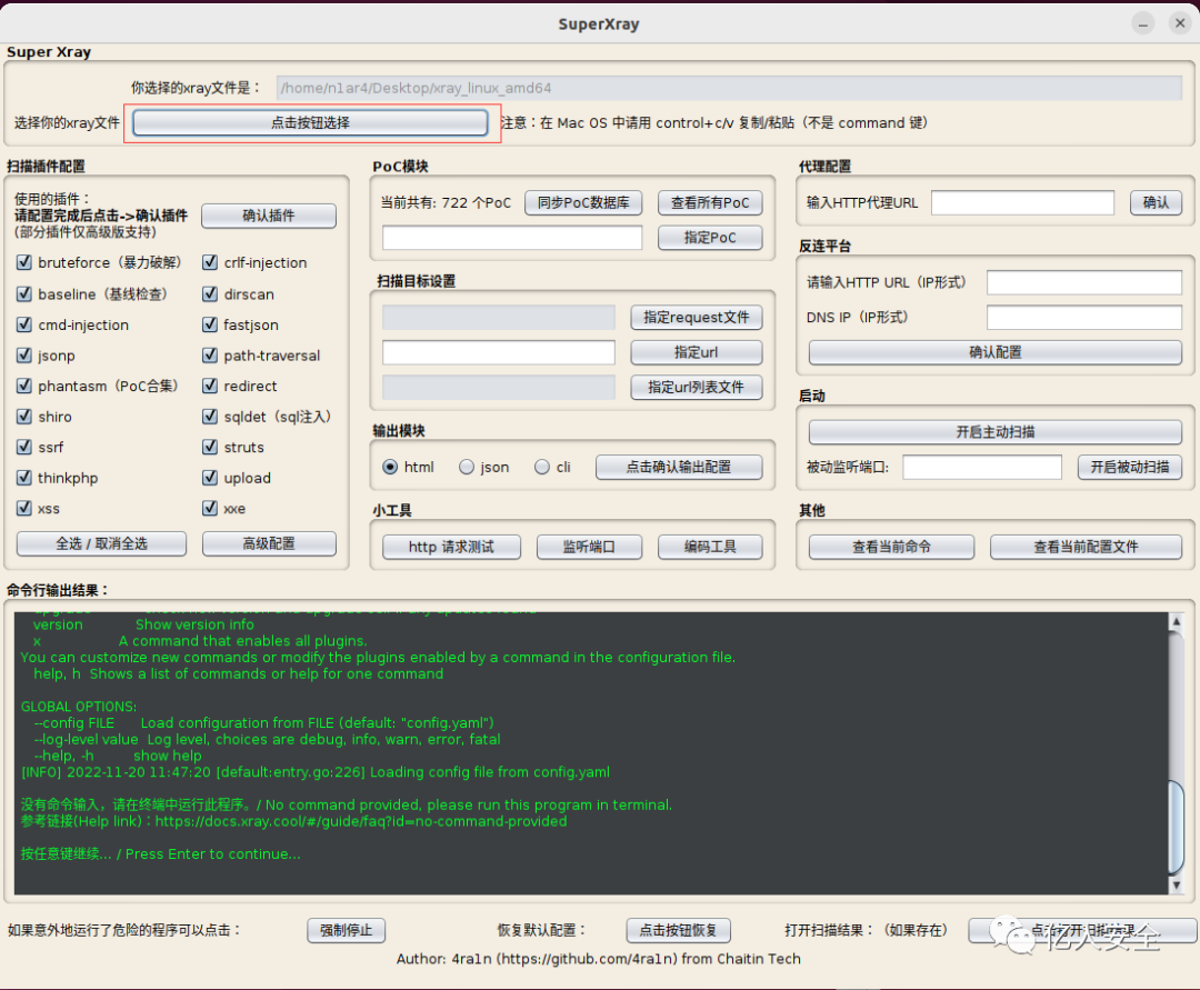 xray 是一款优秀的漏洞扫描工具,但目前只有命令行版本,通过 config.yaml 配置文件启动,很多情况下不好上手,需要一款 GUI 工具来帮助新人更快使用。本工具仅是简单的命令行包装,并不是直接调用方法。在 xray 的规划中,未来会有一款真正的完善的 GUI 版 XrayPro 工具,敬请期待。