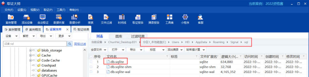根据对旧版本Signal通讯软件的分析可知,Signal通讯软件将数据存储在%AppData%目录下Roming\Signal文件夹(如:C:\Users\Admin\AppData\Roaming\Signal)。聊天记录存储在%AppData%\Roming\Signal\sql\db.sqlite文件中。