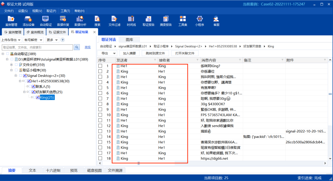 基于对原有Signal取证小程序的更新,快速开发出可直接查看即时通讯应用Signal的联系人、聊天记录、聊天附件、消息ID、附件导出路径等相关信息的小程序。