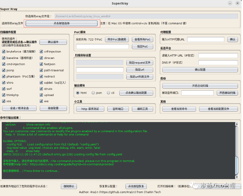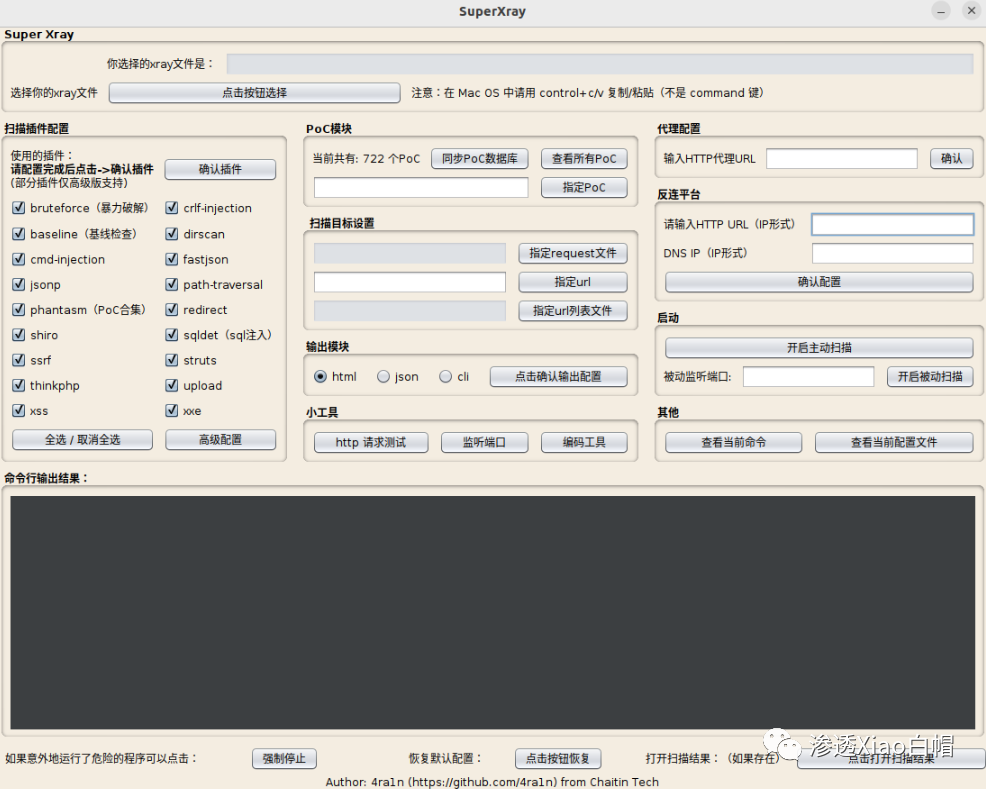 xray 是一款优秀的漏洞扫描工具,但目前只有命令行版本,通过 config.yaml 配置文件启动,很多情况下不好上手,需要一款 GUI 工具来帮助新人更快使用。本工具仅是简单的命令行包装,并不是直接调用方法。在 xray 的规划中,未来会有一款真正的完善的 GUI 版 XrayPro 工具,敬请期待。