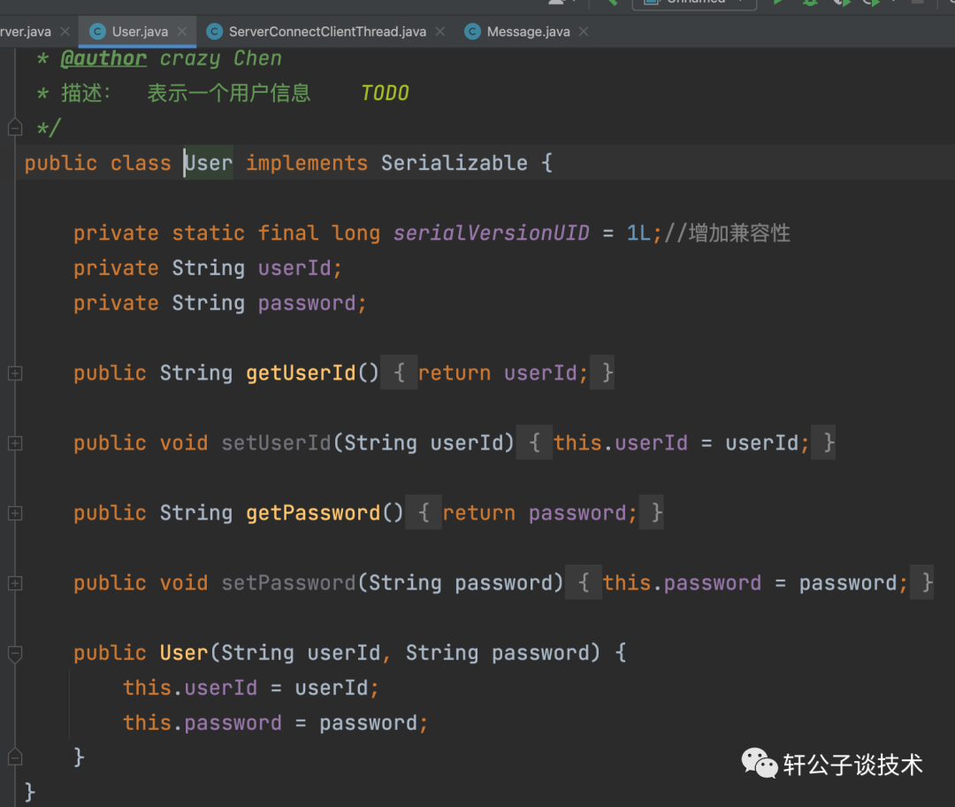 user作为一个用户,登陆用户,会存在序列化吗,不清楚,来点击user看看,所以不会存在
