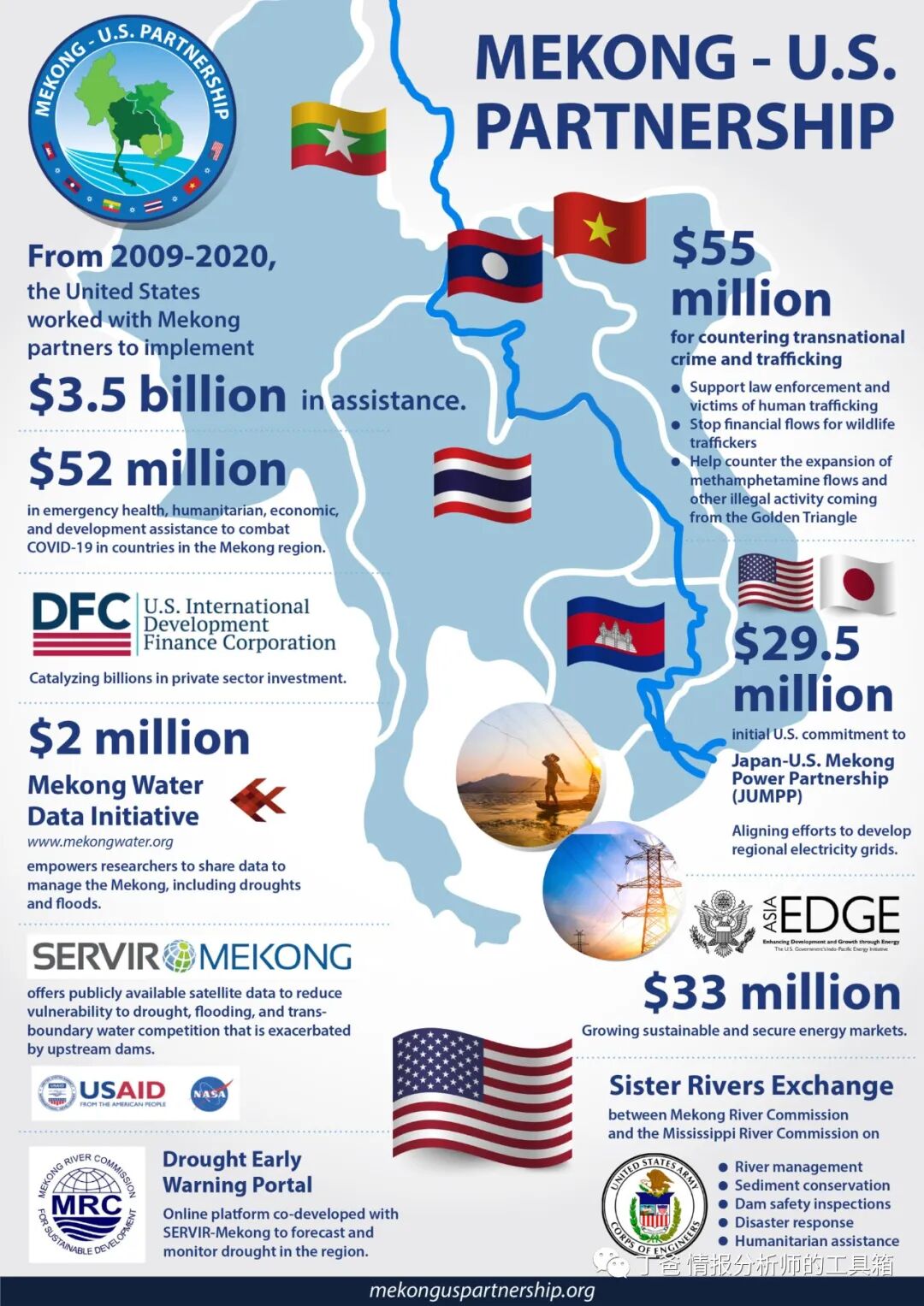从2009年到2020年,美国与湄公河伙伴合作实施了35亿美元援助。