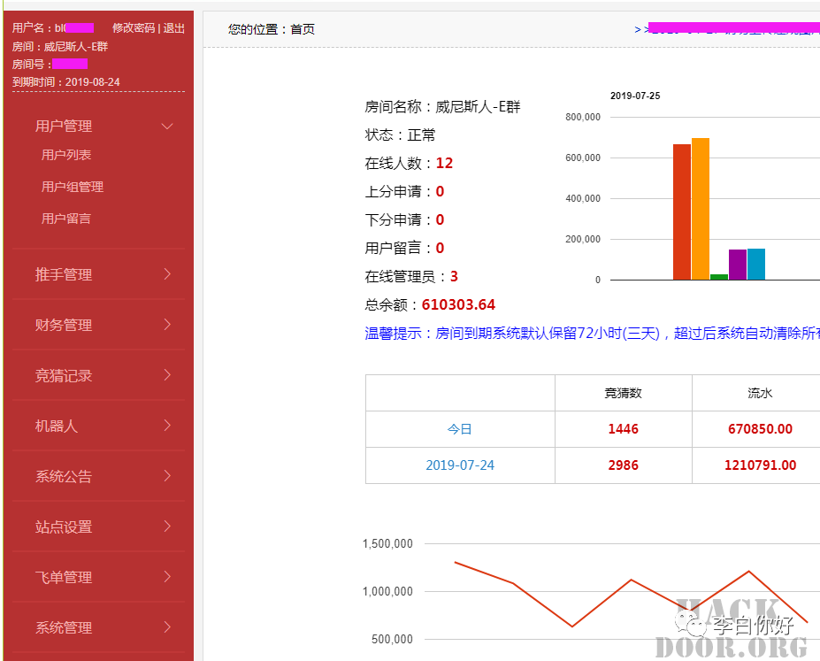 在经过长达三天的监控后,发现该名黑客的盈利方式。这个人打开了一个博彩的代理管理平台,如下:
