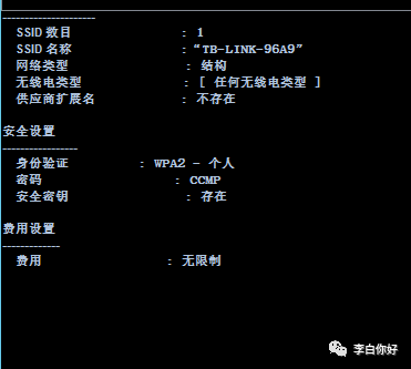 所有用户配置文件 : TB-LINK-96A9netsh wlan show profile name="输入上图配置文件名称"
