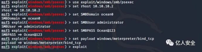set RHOST 10.10.10.4 -->设置攻击目标IP,端口默认445