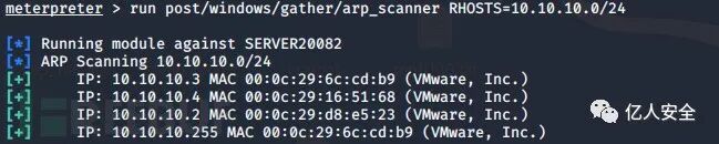 meterpreter >run post/windows/gather/arp_scanner RHOSTS=10.10.10.0/24