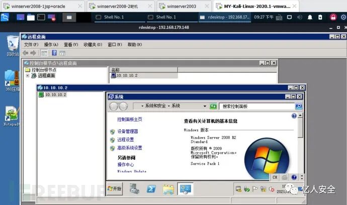注:虚拟机winserver2008-2需要开启RDP,且设置为任意连接